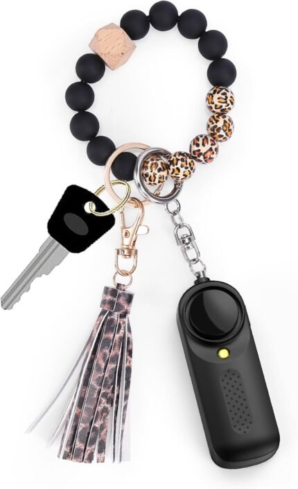 AMIR Key Ring Bracelet with Personal Alarm, Car Keychain Holder, Silicone Wristlet Tassel Keychain, Women Beaded Bangle Chains