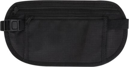 Bewudy Secure Travel Money Belt, Anti Theft Travel Bag, Travel Money Belt Under Clothes, Hidden Travel Pouch Protect Your Credit and Money With Blocking Passport Holder Waist Wallet (Black)