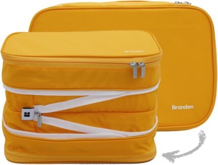 BRANDEN Compression Packing Cube, X-Large, Yellow | Travel Essentials l Luggage Organizer l Self Compression Organizer for Travel l Overnight Trip, Road Trip, Beach, Cruise