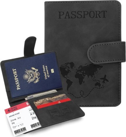 Passport Holders, RFID Blocking Credit Card Holder, PU Leather Vaccine Card Holders for Travel with Magnetic Buckle, Travel Must Haves Cruise Ship Essentials for Men, Women (Black)