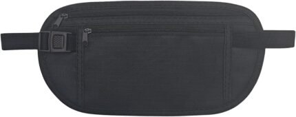 FuninCrea Money Belt, Nylon Fanny Pack Hidden Belt Bag with RFID Blocking for Women Men, Anti-theft Waist Pack Under Clothes with Adjustable Buckle for Travel, Running, Hiking, Cycling (black)