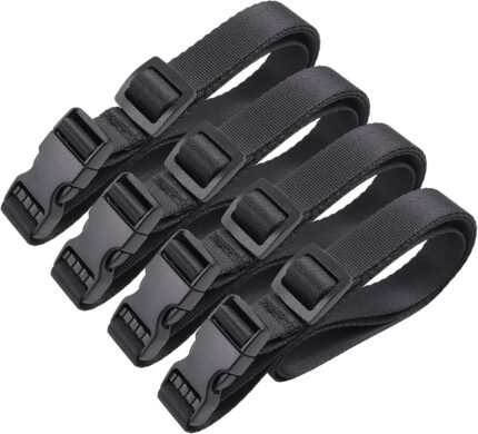 Vigorport Utility Straps with Quick Release Buckle, Nylon Backpack Accessory Sleeping Bag Strap, Adjustable for Hiking, Travel, Outdoor Sports-4 Pack (Black, 0.75″ W-40” L)