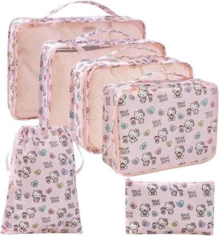AmBealla 6 Set Travel Organizer,Packing Cubes for Travel Luggage Organizer Bags,Waterproof Pink Twill,Cute Packing Organizers for Business/Vacation,Women’s Clothes Storage