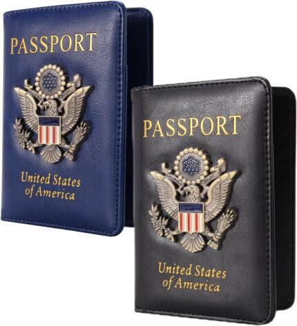 2 pieces Passport Holder and Card Slot Combo RFID Blocking Leather Family Travel Passport Wallet Travel Accessories for Men Women (Blue and black)