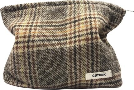 GUTGNK Women’s Cosmetic Bag, Plaid Travel Cosmetic Bag Small Cosmetic Bag Skin Care Cosmetic Change and Wash Convenient Handbag Zipper Storage Bag
