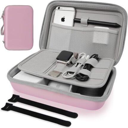 Hard Travel Electronic Organizer Case for Power Bank Chargers Cables USB Flash Drive SD Card Electronics & Backpack Organizer Travel Case Small Portable Accessories Bag, Pink