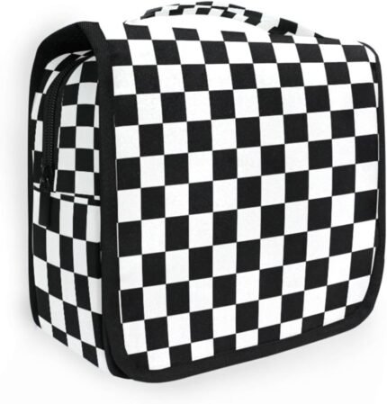 Hanging Toiletry Bag Black and White Checkered Travel Makeup bag for Toiletries Portable Travel Toiletry Organizer Cosmetic Bags with Hanging Hook