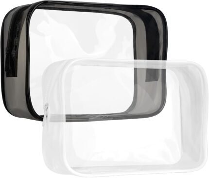 Price: (as of – Details) TSA Approved Toiletry Cosmetic Bags, White+Black 2 Pack Clear Travel Bags for Toiletries with Zipper
