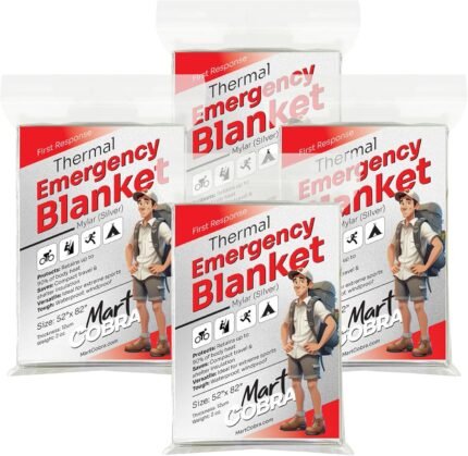 Mart Cobra Emergency Blanket 4-Pack Space Mylar Blankets Survival Gear and Supplies Reusable Thermal Camping Essentials First Aid Car Emergency Kit Prepper Bug Out Bag Foil Warm Cat Cold Snow Winter