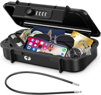 Portable Safe Lock Box with Waterproof Travel Safe, Combination Key Lock, Removable A3 Steel Cable Locks for Beach, Outdoor, Home, Dorm, Office, Car