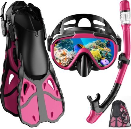 Snorkel Set with Fins for Adults, Snorkeling Gear for Adults Men and Women, Snorkle, Mask Set Adults Dry Top Snorkel Mask Combo Set with Travel Bag for Snorkeling, Diving, Swimming