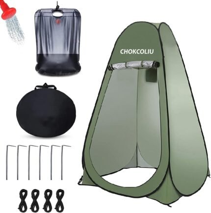 Pop-up Shower Tent & 20L Solar Shower Bag Combo – Waterproof Camping Privacy Shelter with Portable Heated Water Reservoir for Outdoor Bathing, Beach, Hiking (Green, 120x120x190cm)