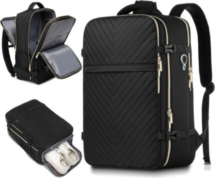Large Carry On Travel Backpack – Flight Approved Personal Item Backpack with Shoe Compartment Waterproof Luggage Suitcase Backpacks for Women Fit 17 Inch Laptop College Overnight Weekender Bag Black