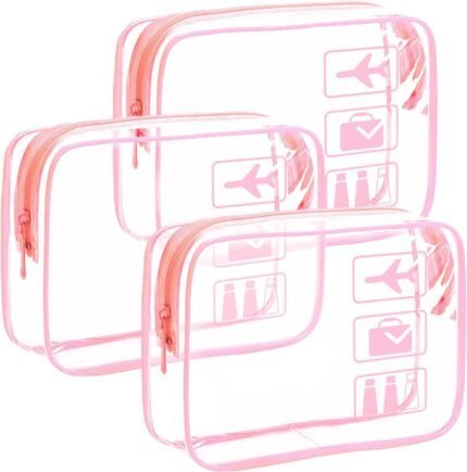 3Pcs TSA Approved Toiletry Bag – Carry on Airport Airline Compliant Bag,3 Pack Clear Travel Bags for Toiletries,Clear Makeup Bags Toiletry bags Quart Size Travel Bag, Pink
