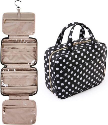 BAGSMART Large Toiletry Bag Travel Bag with Hanging Hook, Water-resistant Makeup Cosmetic Bag Travel Organizer for Accessories, Shampoo, Full Sized Container, Toiletries
