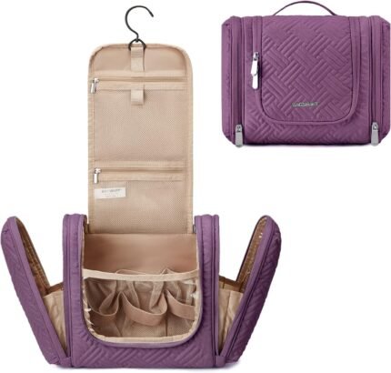 BAGSMART Large Travel Toiletry Bag for Women, Hanging Toiletry Bag with Hook, Travel Cosmetic Makeup Bag Travel Organizer for Accessories, Shampoo, Full Sized Container, Toiletries,Purple-Large