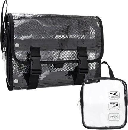 Clear Toiletry Bags for Traveling, Hanging Toiletry Bag for Women and Men with TSA Approved 3-1-1 Small Pouch, Large Travel Makeup Bag Cosmetic Organizer Pouch for Toiletries, Full Sized Container