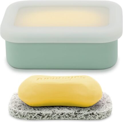 OLAMAR Portable Travel Soap Case with Draining Layer,Enhanced Leak Proof Silicone Travel Soap Container,Shatterproof Soap Holder for Traveling, Camping, Gym, Dorm, Bathroom (Green, Small)