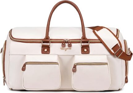 Convertible Garment Bag for Travel, Garment Duffle Bag for Women, PU Leather Travel Garment Bag Carry On, 2 in 1 Suit Travel Bags for Hanging Clothes with Shoe Compartment-Cream