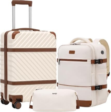 Coolife Luggage 3 Piece Set Suitcase Spinner Hardshell Lightweight TSA Lock (apricot white, 3 piece set(20in24in28in))
