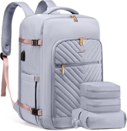 LOVEVOOK Large Travel Backpack for Women,Carry on Backpack Flight Approved,Personal Item Backpack Travel Bag with 3 Packing Cubes,Waterproof Back Pack TSA Fit 17inch Laptop Luggage with USB Port