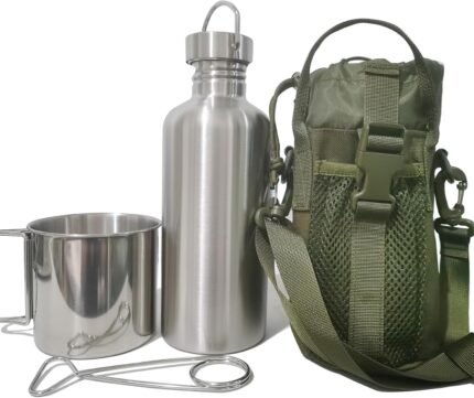 Survivor 3-in-1 Outdoor Canteen Kit – 304 Stainless Steel Water Bottle & Camping Cup & Carrying Bag | Outdoor Survival Canteen Kit | Bushcraft Gear | Wide Mouth Design | Essential Hiking Accessories
