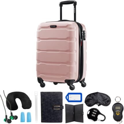 Samsonite 68308-1694 Omni Hardside Luggage 20 inch Spinner Pink Bundle with Deco Gear 10 Piece Luggage Accessory Kit