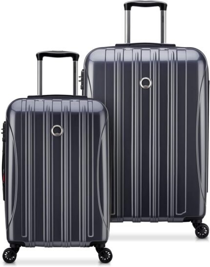 Delsey Luggage Aero 2 Piece Set (21″ & 25″) Spinner Suitcase (Titanium)