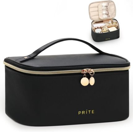 Prite Makeup Bag, Large Capacity Portable Travel Cosmetic Bag, Waterproof Makeup Organizer for Women with Handle and Divider(Black)