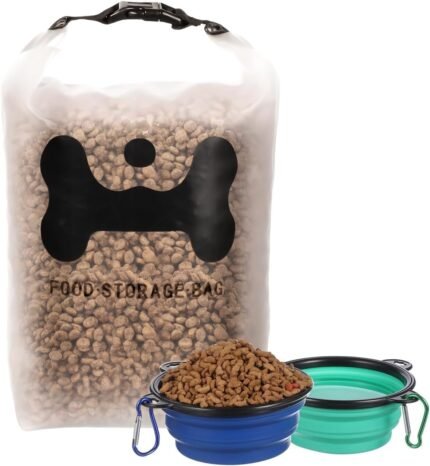 ANVS Silicone Pet Food Storage Bag,40-Cup Dog Food Travel Bag with 2PCS Collapsible Dog Travel Bowls, Perfect for Camping Trip, Dog Boarding, Weekend Getaways and Travel