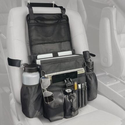 Car Organizer Front Seat: Portable Large Capacity Car Organizers and Storage With Laptop Storage Adjustable Strap Seat Organizer Universal For Police | Driver | Office | Travel | Truck