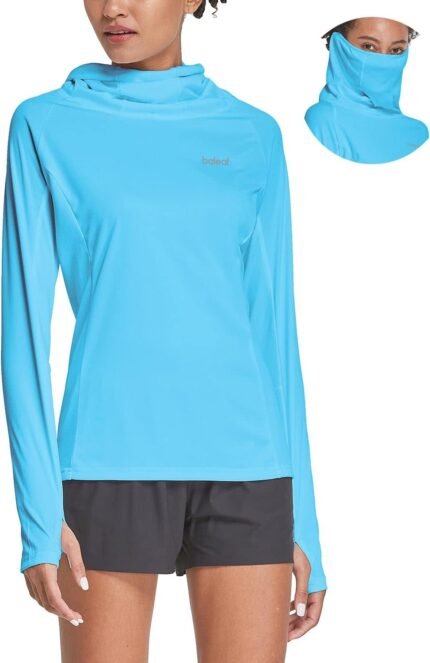 baleaf Women’s Long Sleeve Rash Guard with Face Cover UPF 50+ Swim Shirts Sun Hoddie Lightweight Quick Dry Hiking Tops