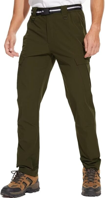 Men’s Outdoor Hiking Pants, Quick Dry,Waterproof,Lightweight Fit Cargo Work & Fishing Pants with 6 Pockets and Belt