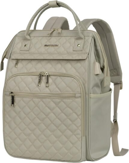 EMPSIGN 17 Inch Laptop Backpack for Women, Work Business Travel Computer College Bags, Large Capacity Water-repellent Quilted Casual Daypack with USB Port, Light khaki