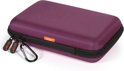 GLCON Deep Purple Carrying Case Hard Storage Case Electronics Organizer Tech Pouch for Hard Drive, Power Bank, Cell Phone, Charger Enclosure – Portable Travel Case Bag with Carabiner