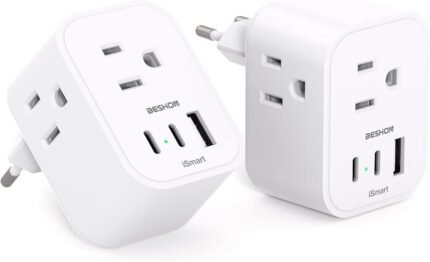 【2-Pack】 European Travel Plug Adapter, International Power Plug Adapter with 3 Outlets 3 USB Charging Ports(2 USB C), Type C Plug Adapter Travel Essentials to Most Europe Spain Italy France Germany