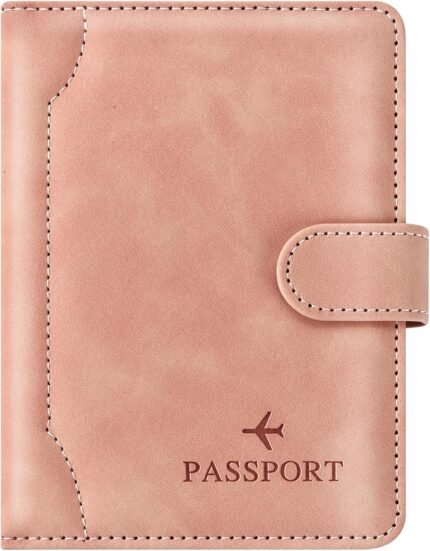 Herain Pink Passport Holder for Travel, Passport Wallet Cover Case Women Men Family Cruise Ship Essentials, RFID Passport Book Holders Travel Accessories Vacation Must Haves