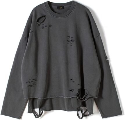 Vintage Streetwear ripped Sweatshirt Men Fashion Autumn Solid Color Oversize Sweatshirt