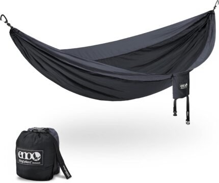 ENO DoubleNest Hammock – Lightweight, Portable, 1 to 2 Person Hammock – for Camping, Hiking, Backpacking, Travel, a Festival, or The Beach – Charcoal/Black