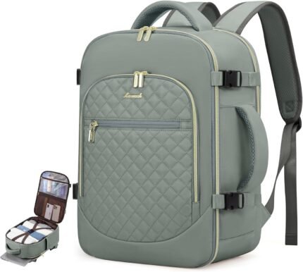 LOVEVOOK Carry on Backpack, 30L Travel Backpack for Women Airline Approved,Luggage Business Weekender Overnight Daypack as Personal Item fit for 15.6 inch Laptop,Gray Green