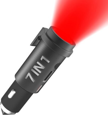 Car Emergency Tool, Car Emergency Flashlight, Small Rechargeable Flashlight Escape Tool, Compact Travel Strobe Flashlight, Car Survival Flashlight Emergency Kit, Window Breaker USB C Car Charger Balck