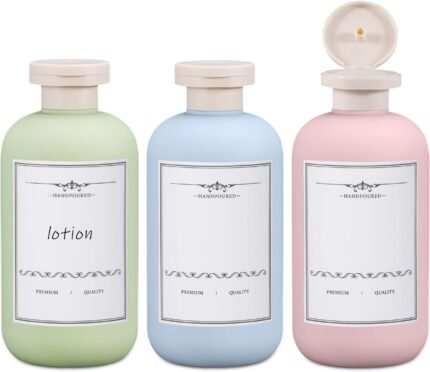 6.7oz 3Pcs Plastic Refillable Travel Shampoo and Conditioner Bottles Refillable Travel Bottle with Flip Cap Plastic Refillable Shampoo and Conditioner Bottles