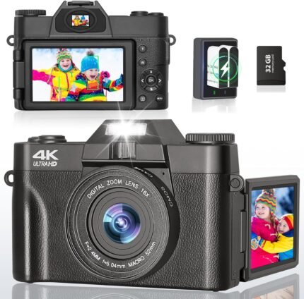 4K Digital Camera for Photography and Video – 56MP Digital Point & Shoot Camere with Flip Screen, Ultra HD Vlogging Camera for YouTube, 32G Card 16X Zoom, Vintage Compact Cameras for Boys Girls Teens