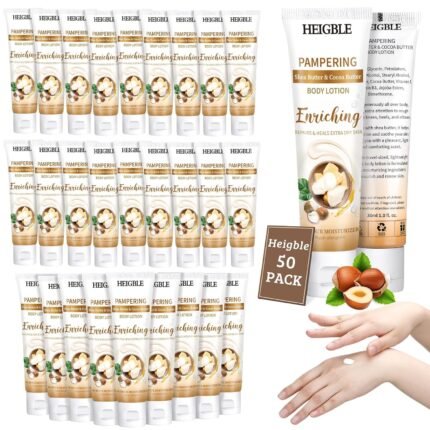 50 Pack Travel Size Body Lotion 1 oz Shea Butter Cocoa Butter Body Lotion Dry Skin Moisturizer with Flip Cap for Extra Dry Skin, Inns, Hotels Resorts, Airlines, Offices, Gyms and More