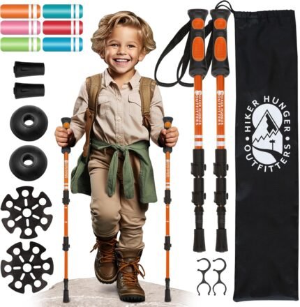 Kids Hiking Poles by USA Brand – Lightweight Collapsible Kids Walking Stick w/Quick Adjustable Flip Locks