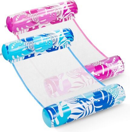 4 Pack Inflatable Hammock Pool Floats with Air Pump and Ball. 4-in-1 Design Conversion. Adult Size Pool Floaties Toys, Multi-Purpose Floats for Swimming Pool, Saddle, Lounge Chair, Hammock, Drifter.