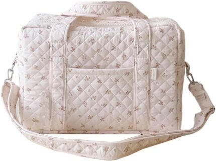 Quilted Duffle Bag For Women Cute Weekender Bag Floral Travel Bag Aesthetic Puffer Duffle Bag Cotton Diaper Tote Bag
