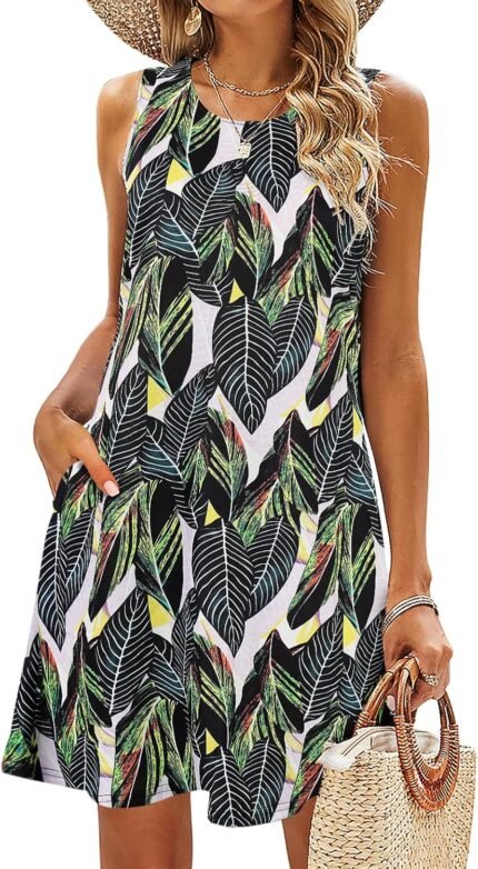 Price: (as of – Details) Product Description Simplefun Women’s Sleeveless Sundresses Crew Neck T Shirt Dress with Pockets Material:The summer