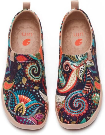 UIN Women’s Artistic Slip-On Shoes Vibrant Floral Casual Loafers Lightweight Comfortable Travel Footwear