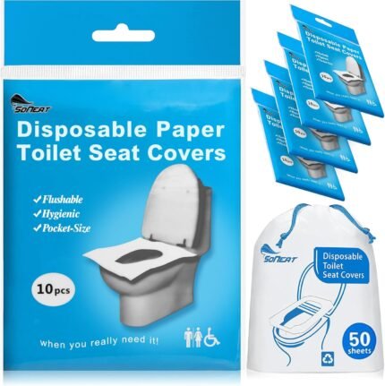 Disposable Toilet Seat Cover – 50 Count Large Flushable Paper Toilet Seat Covers for Travel, Kids Potty Training & Public Restrooms, Premium Paper Toilet Seat Liners, 5 Pack
